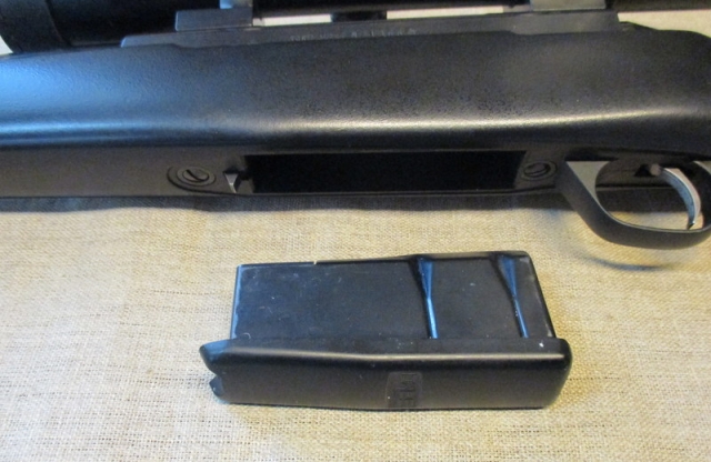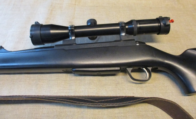 Uutta vastaava hirvikivääri viiden patruunan irtolippaalla, Kahless arvokiikarilla, Optilock jaloilla ja aseseppä Löppösen valmistamalla suujarrulla.